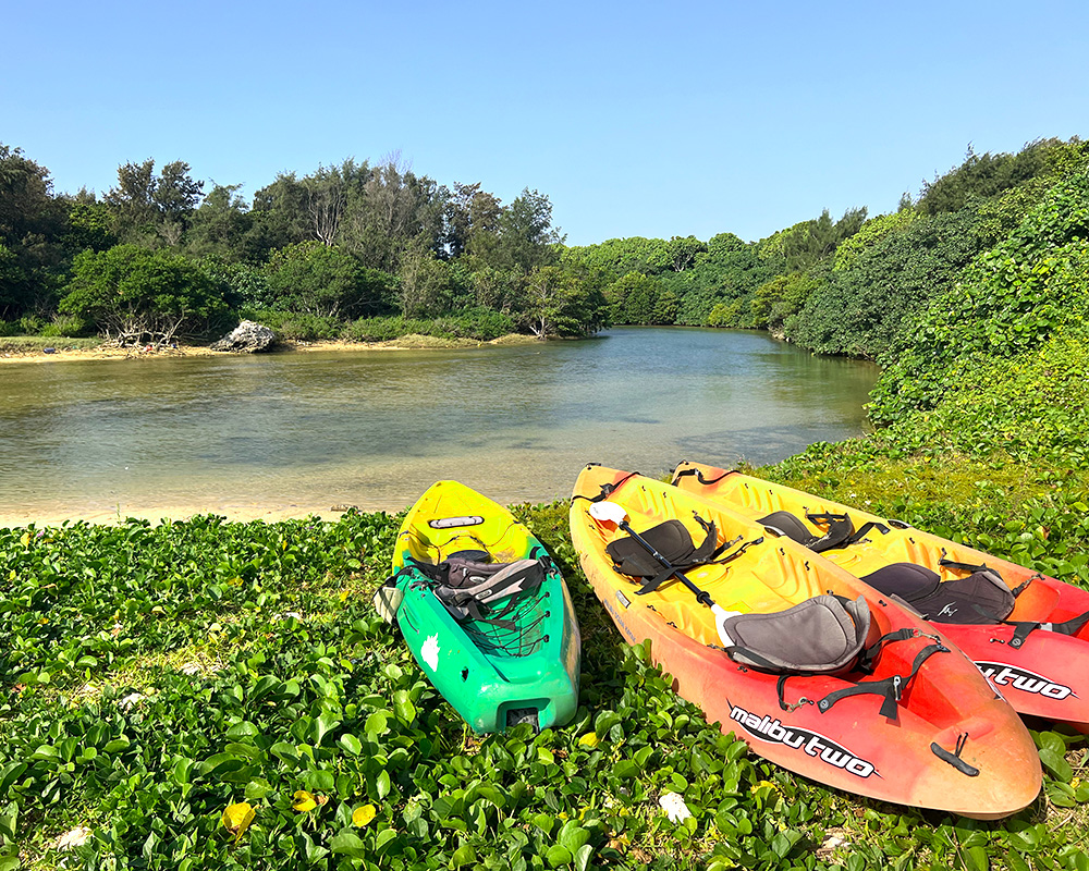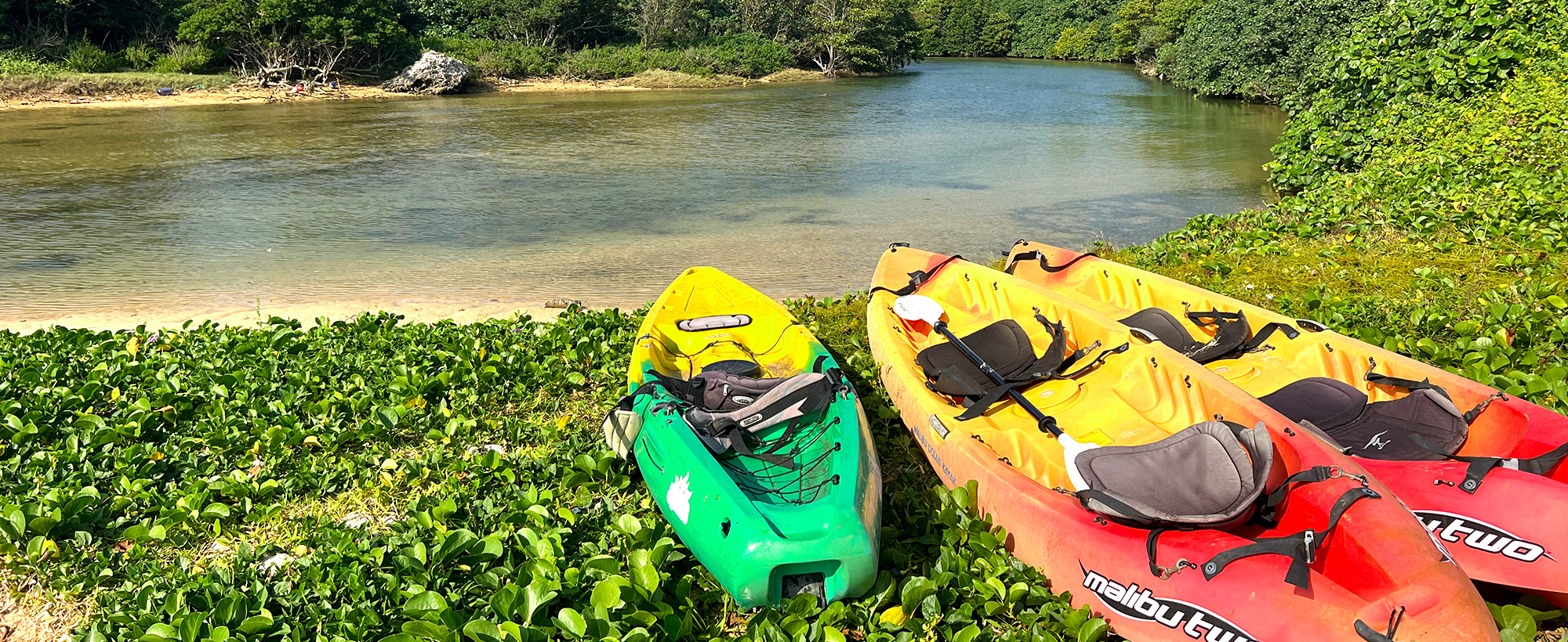 新石垣空港近くにある轟(とどろき)川を舞台にして、カヌーとビーチコーミングをお楽しみいただけるツアーです。マングローブを始めとした木々、水面からでも見えるたくさんの魚影、聞こえてくる鳥のさえずりなど、八重山に生息するたくさんの生き物の命を感じに行きませんか? 川幅が広く流れも穏やかなため、初心者も安心のコースです。轟川は世界の青珊瑚と称される白保の海を臨むビーチにつながっており、カヌーをお楽しみいただいた後、ビーチ散策もできます。川遊びと海の眺めを満喫して、ゆったりとした癒しの時間をお過ごしください。