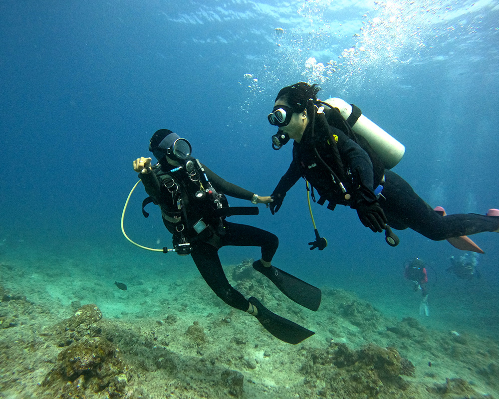 [①シュノーケリング]、[②体験ダイビング]、[③ライセンス講習(OW/AOW)]、[④ファンダイビング]、と各種コースをご用意。海遊びやダイビングが初めての方もぜひチャレンジしてみてください。経験豊富なスタッフが全力でサポートいたします。一緒に、海遊びを満喫しましょう! 不安や疑問なことがあれば、ご質問だけでも大歓迎です。下記のお問合せフォームより、お気軽にご連絡ください。