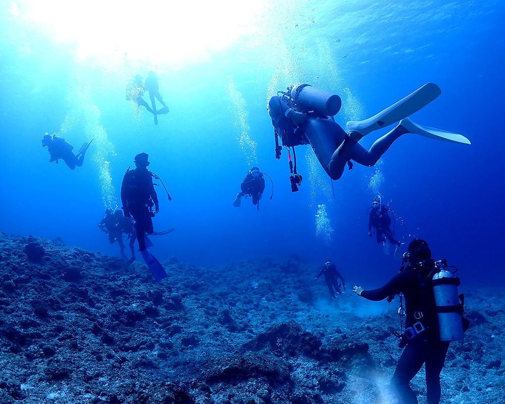 「ダイビングは、もっと自由に、のびのびとしていていい」。私たちはそう思うのです。決まったコースを進み、お決まりの魚を見るのも楽しい。でも、これだけ大きくて深い海。私たちがまだ知らない魅力がたくさん隠されているはず。ダイビングはレジャーではありますが、冒険でもある。安全・安心は大前提としながらも、「ここに入ったら、どんな海が広がっているか?!」「ここを曲がったら、どんな生物と出会えるか?!」。そんなドキドキとワクワクに溢れたダイビングをしてみたいと思いませんか? ベテランダイバーさんのなかには、ダイビングに少しマンネリを感じている人がいるかもしれません。そんな方はぜひマリンポイントへどうぞ!