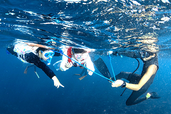 シュノーケルコースから、体験ダイビングへの変更も承っております。「泳いでいるうちに、ダイビングにも興味出てきた!」という方は船の上でご相談くださいませ。
